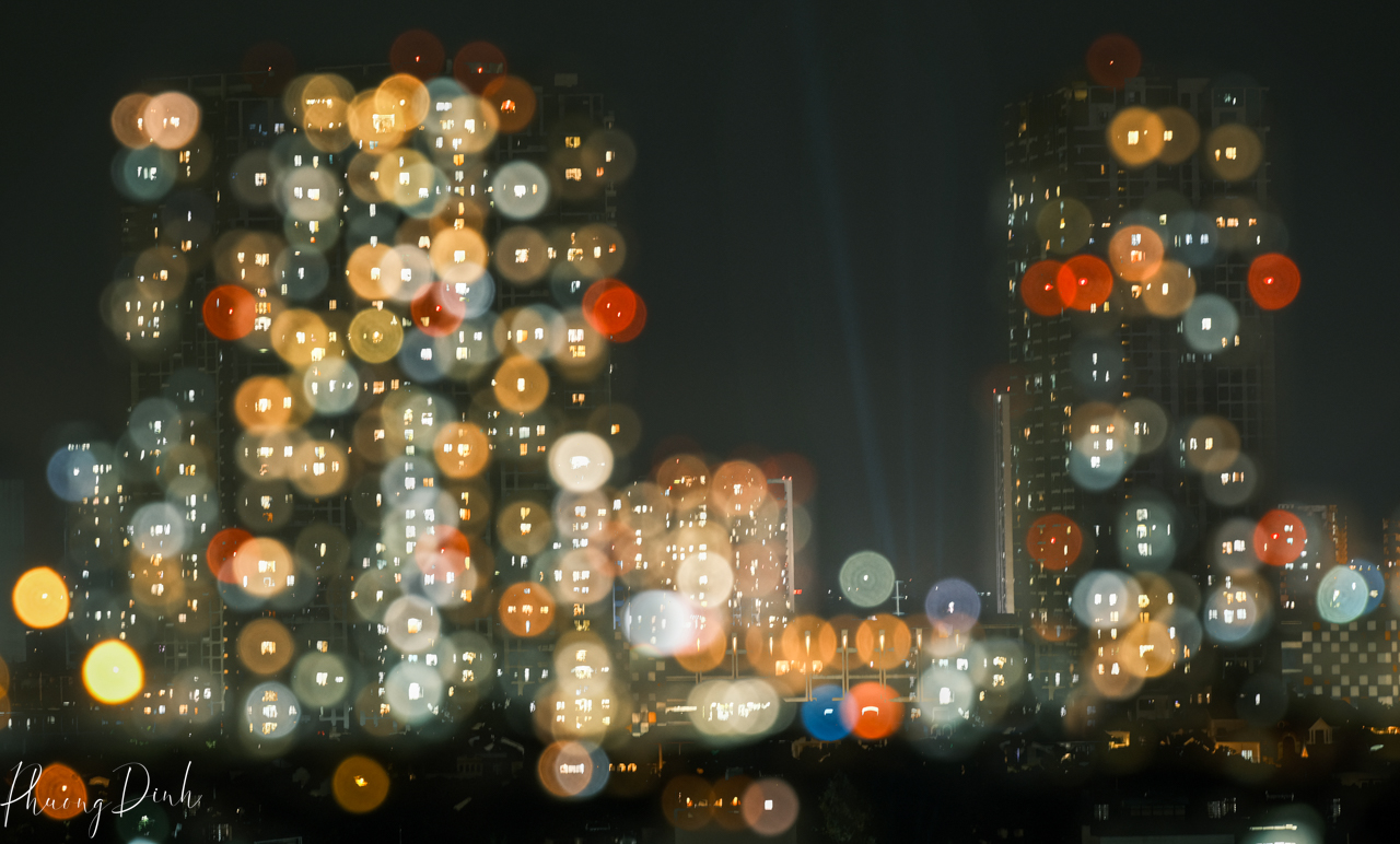 An iconic scene: high-rise apartments lining the Saigon River in Ho Chi Minh City, Vietnam. I aim to capture the high-rise buildings from a unique perspective, using multiple exposures to create a blurred cityscape effect during the blue hour.