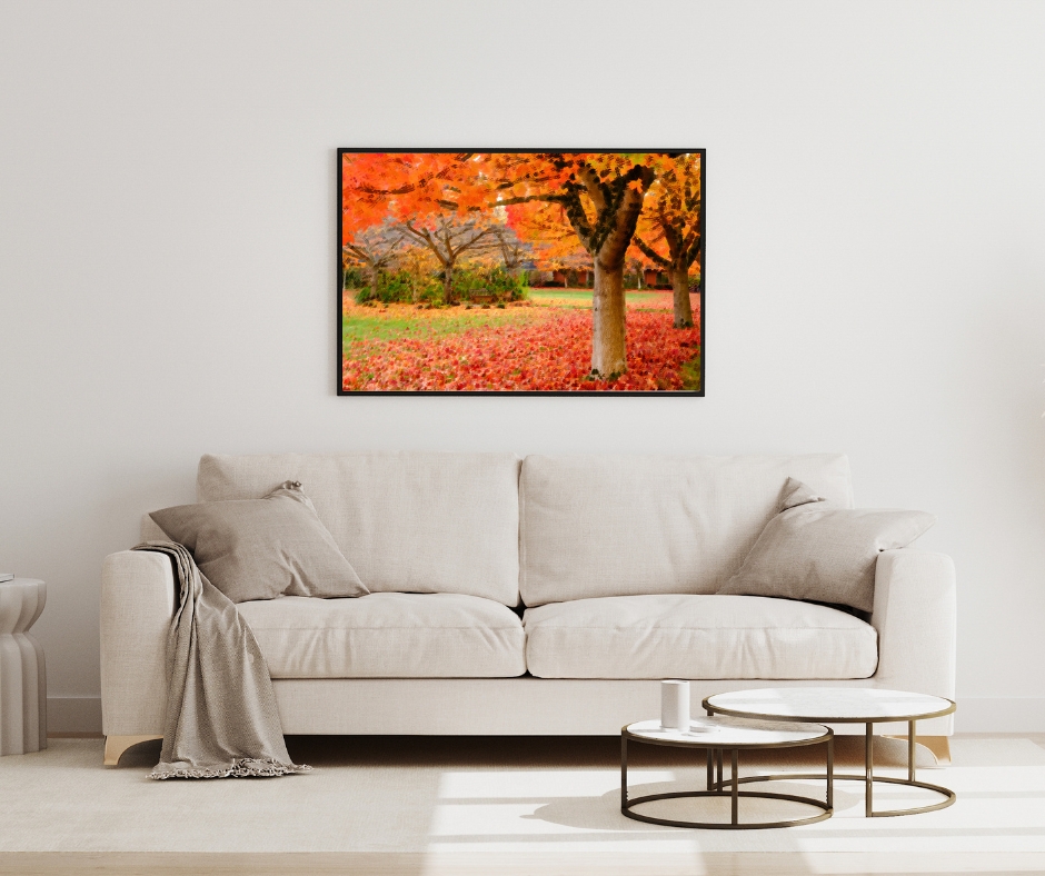 Golden leaves and warm light mingle in a flowing dance of color, turning the autumn landscape into a painterly vision. The scene evokes the fleeting beauty of the season, where every leaf, shadow, and ray of light seems to move with quiet rhythm, inviting a moment of reflection and calm amidst the richness of fall.